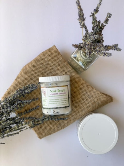 Relax by filling the tub and adding some "Soak Deeply". Don't have a bathtub? This also works amazing in a foot soak too! Available in 8oz and 16oz
